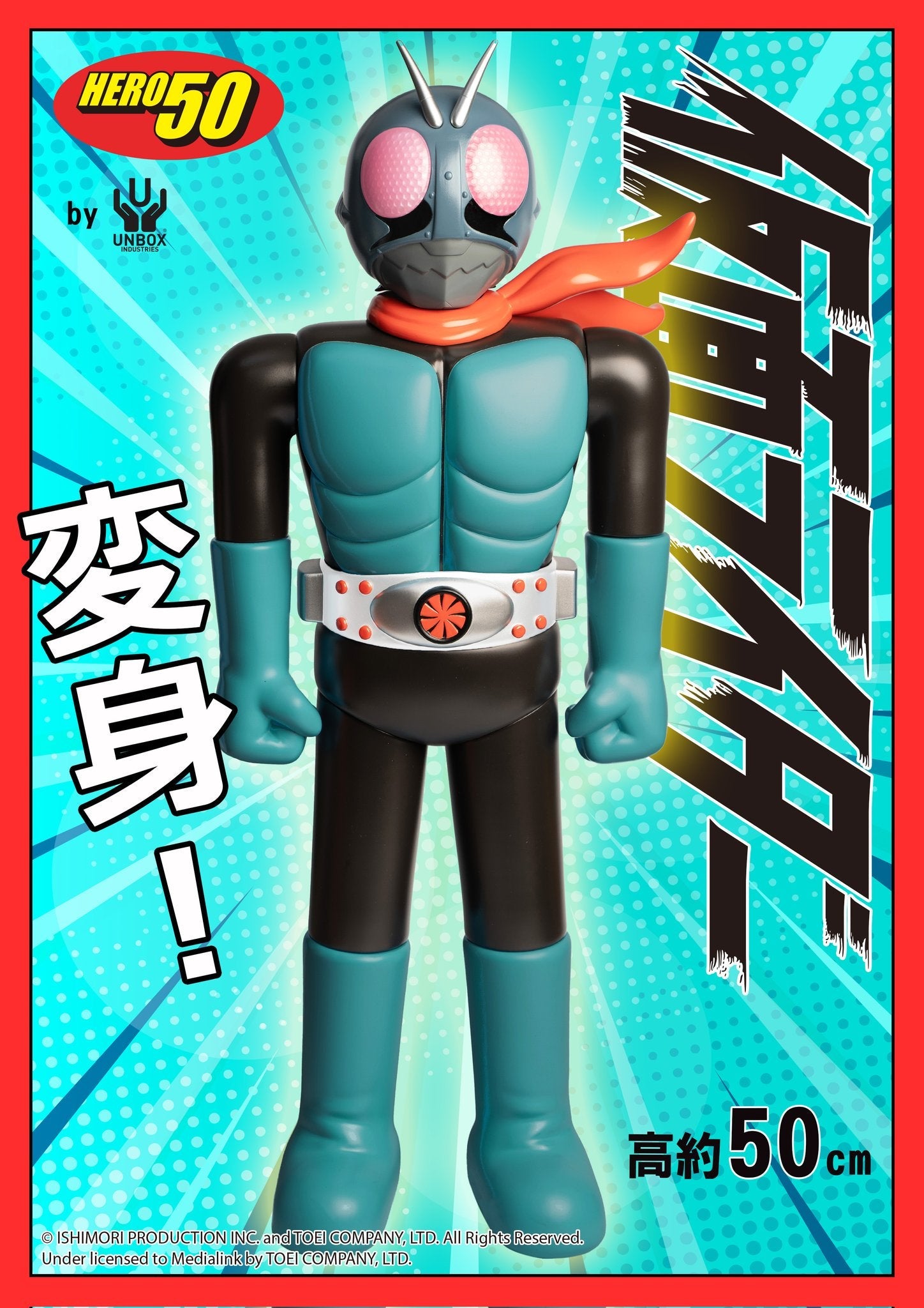 Unleash a wave of nostalgia with this 50cm soft vinyl Kamen Rider HERO 50, a stunning tribute to the classic Japanese superhero and the iconic toy culture of the 70s and 80s. Crafted with meticulous attention to detail, this figure features vibrant colors, bold design, and a timeless aesthetic reminiscent of vintage jumbo machinders. Perfect for collectors and fans alike, its imposing size and retro charm make it a standout display piece or a cherished addition to any Kamen Rider memorabilia collection. Relive the magic of a bygone era with this extraordinary homage to a tokusatsu legend!