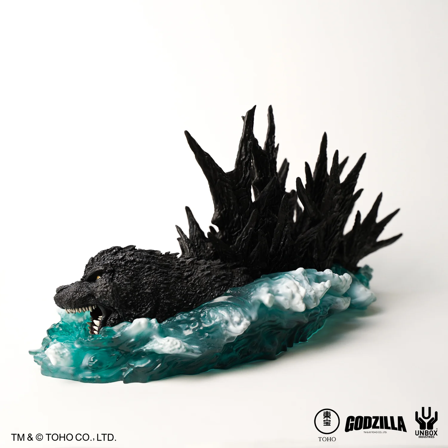 From Godzilla’s snarling expression and razor-sharp teeth to the jagged dorsal fins that pierce through crashing translucent waves. Each fin is carefully cast and requires simple assembly, allowing collectors to appreciate every piece of its dynamic form.